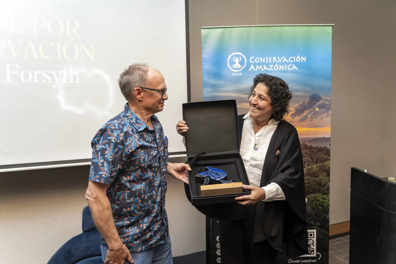 El evento fue organizado por Conservación Amazónica – ACCA, organización que Forsyth cofundó, y estuvo encabezado por su directora ejecutiva, María Elena Gutiérrez, quien destacó la trayectoria del autor y su aporte a la formación de una comunidad internacional de conservacionistas.