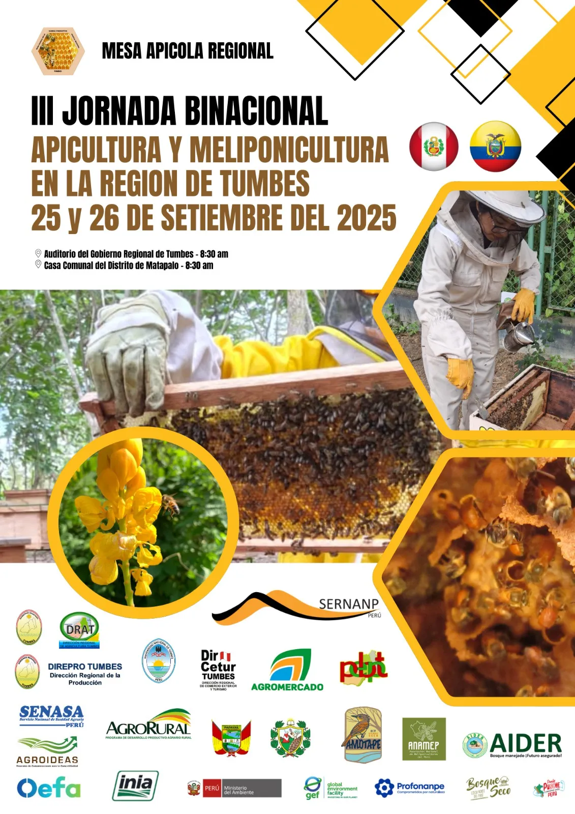 En la región Tumbes, la Mesa Técnica Apícola es la que organiza las jornadas binacionales, con énfasis en sensibilizar sobre la importancia de las abejas para la agroindustria, la sociedad y el equilibrio ambiental del bosque seco.
