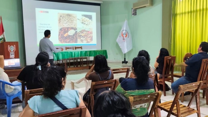 El evento, desarrollado en el auditorio del IIAP San Martín, se realizó en el marco del proyecto “Fortalecimiento de la agroforestería familiar y economía circular en comunidades de Amazonas, Huánuco y San Martín”. La capacitación tuvo como objetivo promover el uso de sustratos elaborados con residuos, lo que contribuye a la reducción de desperdicios y a la generación de ingresos en zonas rurales.