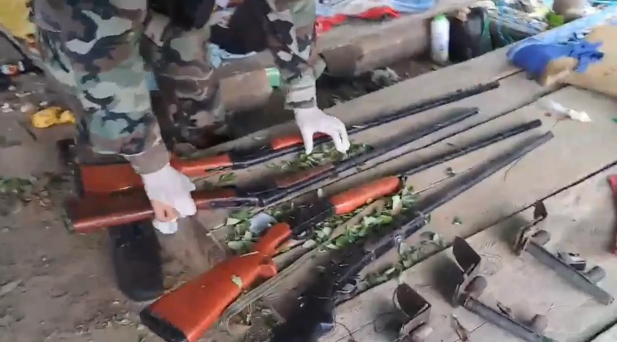 En el lugar se encontraron 1723 kilos de insumos químicos. Entre ellos: gasolina, óxido de calcio y carbonato de sodio, 1725 kilos de hoja de coca en proceso de maceración y 2000 kilos de detritus. También se hallaron cuatro armas de fuego, tres tramperos hechizos, cinco machetes y diversos enseres empleados en las actividades ilegales.