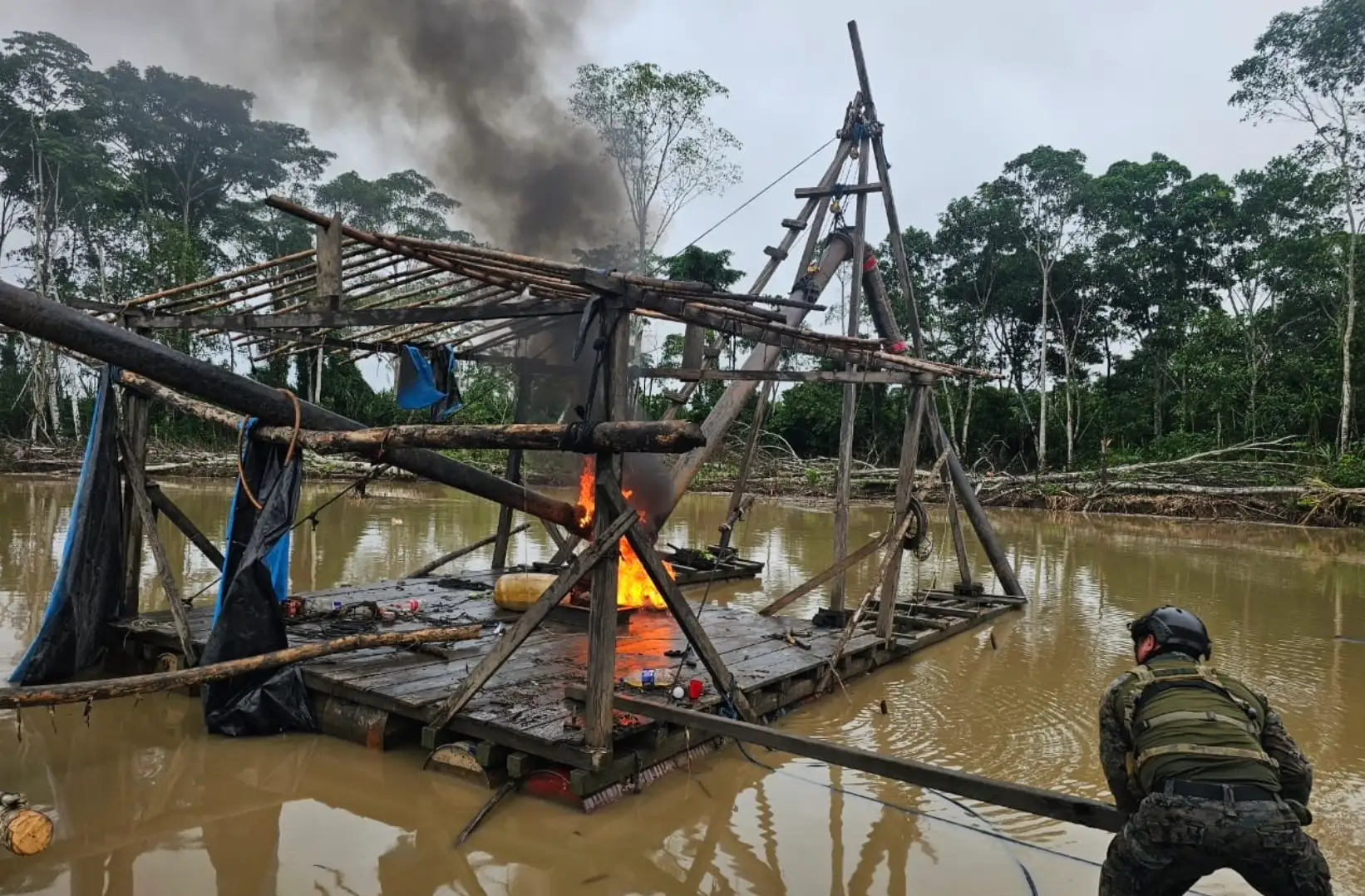 En Madre de Dios, se incautaron y destruyeron 30 dragas, cinco motores, 80 galones de combustible y otros equipos valorizados en S/852 680. (Foto: Difusión)