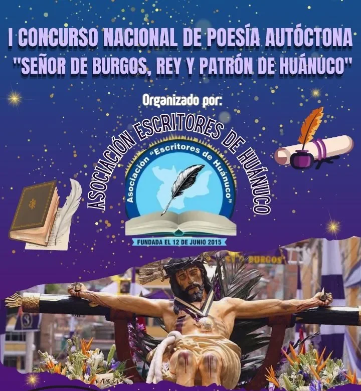 La Asociación Escritores de Huánuco anunció la convocatoria al I Concurso Nacional de Poesía Autóctona “Señor de Burgos, Rey y Patrón de Huánuco”, una iniciativa que busca promover la creación literaria vinculada con la fe y las tradiciones de la región.