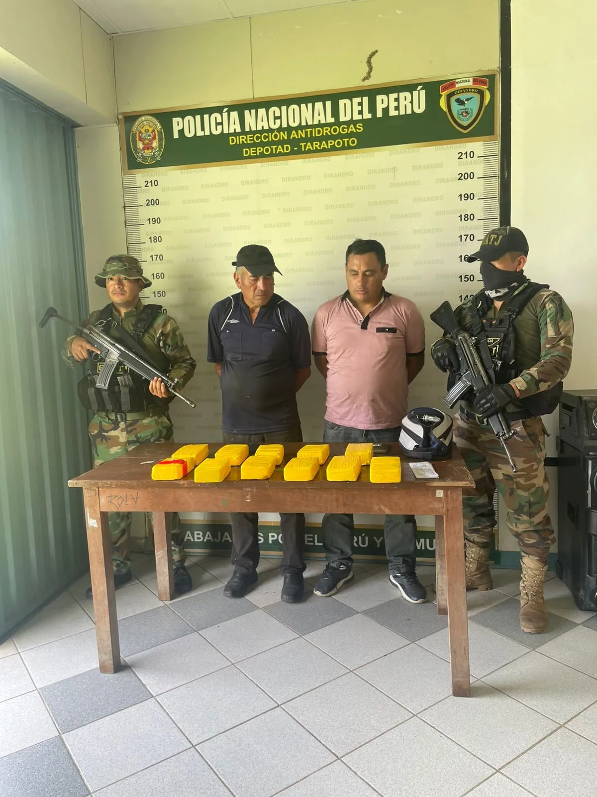 Durante un patrullaje en la carretera Fernando Belaunde Terry, a la altura del puente Colombia, los agentes detectaron una camioneta roja de placa B5Q-900 que circulaba de manera sospechosa. El vehículo era conducido por Vidmar Díaz Silva (42) y acompañado por José Rojas Hidalgo (67). Ambos fueron intervenidos de inmediato y trasladados al Departamento Antidrogas (DEPOTAD) de Tarapoto para una revisión exhaustiva.
