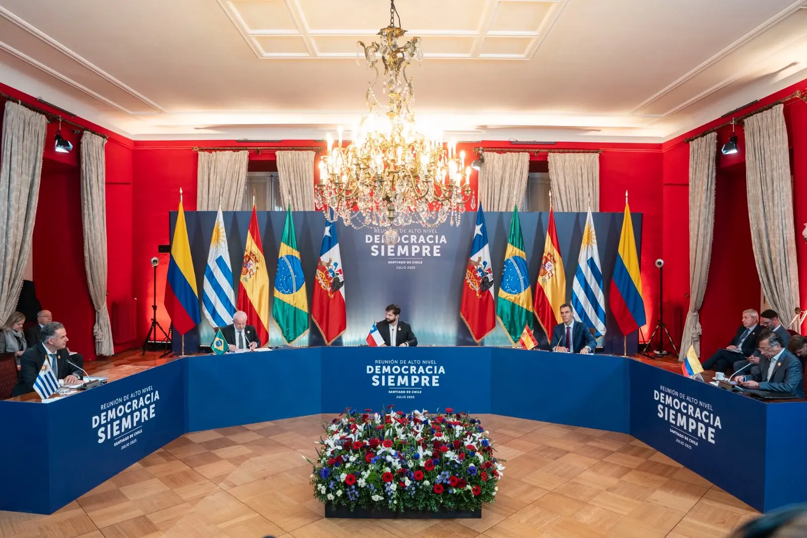 El Palacio de La Moneda de Chile fue ayer el epicentro de un encuentro internacional sobre democracia, donde el presidente de Chile, Gabriel Boric, recibió a sus homólogos de Brasil, Luiz Inácio Lula da Silva; España, Pedro Sánchez; Colombia, Gustavo Petro, y al intendente de Canelones, Uruguay, Yamandú Orsi. La reunión, titulada «Democracia Siempre», reafirmó el compromiso de estas naciones con la profundización de los valores democráticos y la acción conjunta frente a los desafíos globales.