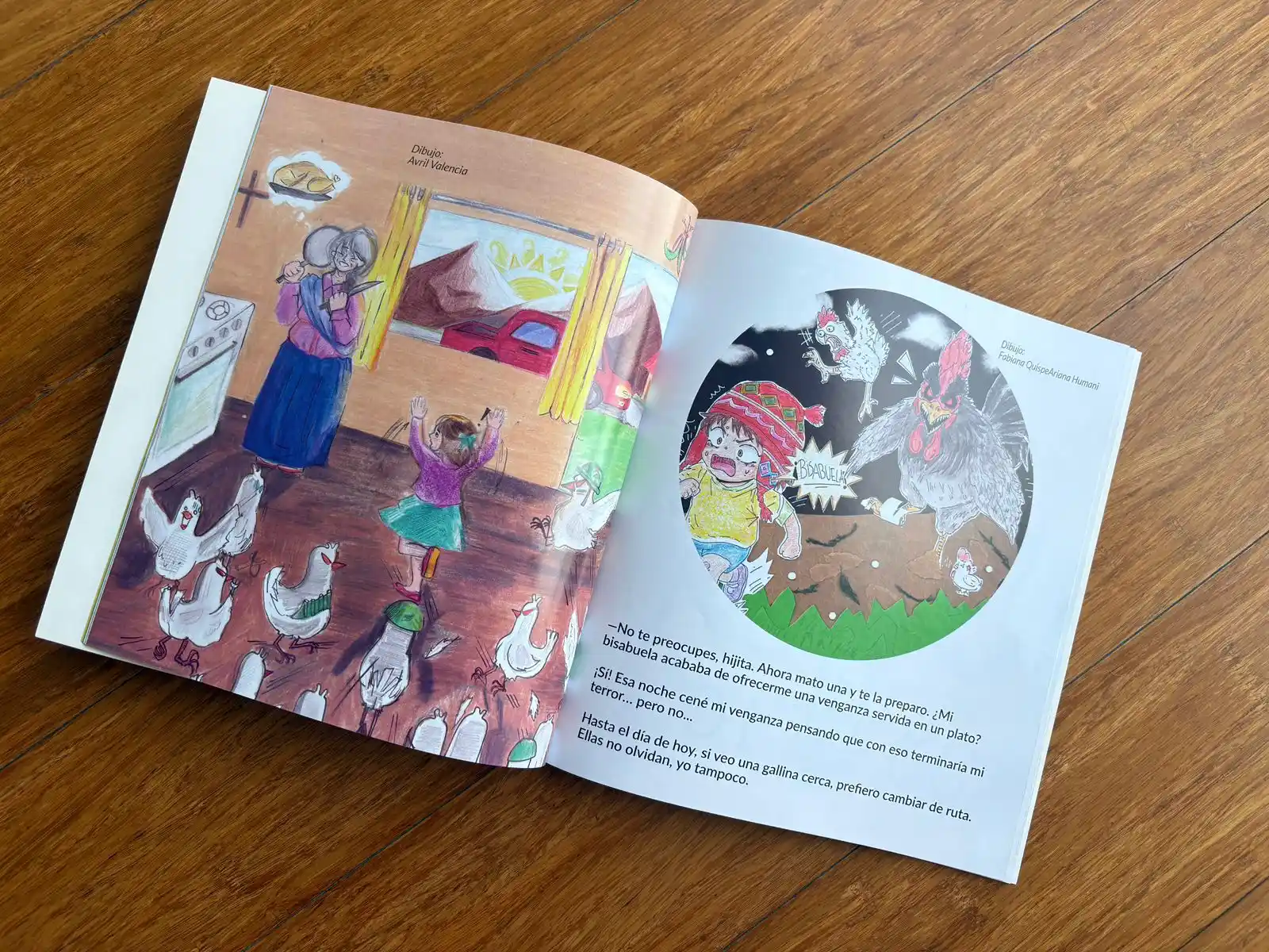En la siguiente etapa, los textos fueron distribuidos en formato de díptico para que los estudiantes plasmaran sus interpretaciones visuales. Después de una nueva votación colectiva, las ilustraciones elegidas se incorporaron al libro final.