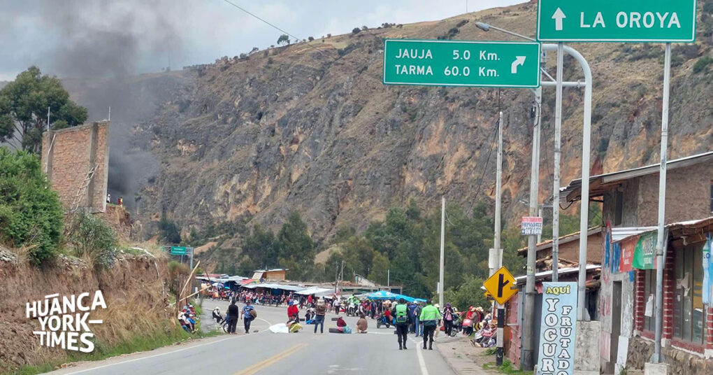 En varios puntos de concentración de San Jerónimo de Tunán hay quema de llantas, barricadas de piedras y troncos, así como también manifestantes sentados en el asfalto que impiden el paso de las unidades.