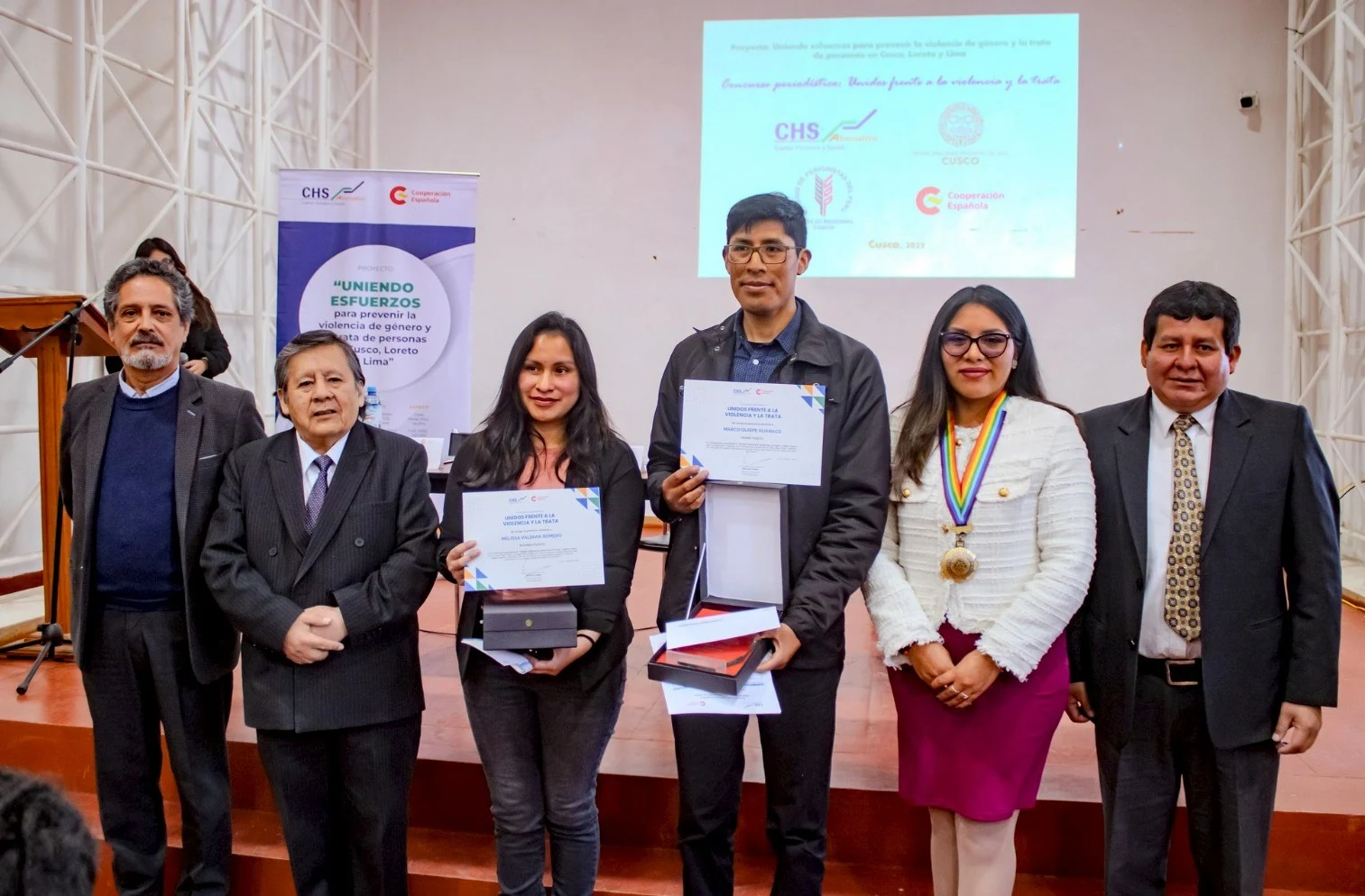 CHS Alternativo, con el apoyo de la Cooperación Española, reconoció el importante trabajo del periodismo en la investigación, información y sensibilización de la ciudadanía frente a dos graves problemas sociales: la trata de personas y la violencia de género en el Perú; en esta oportunidad a través de la premiación del Concurso periodístico “Unidos frente a la violencia y la trata”, realizado entre los meses de agosto y diciembre del 2024, en las regiones Cusco, Loreto y Lima.