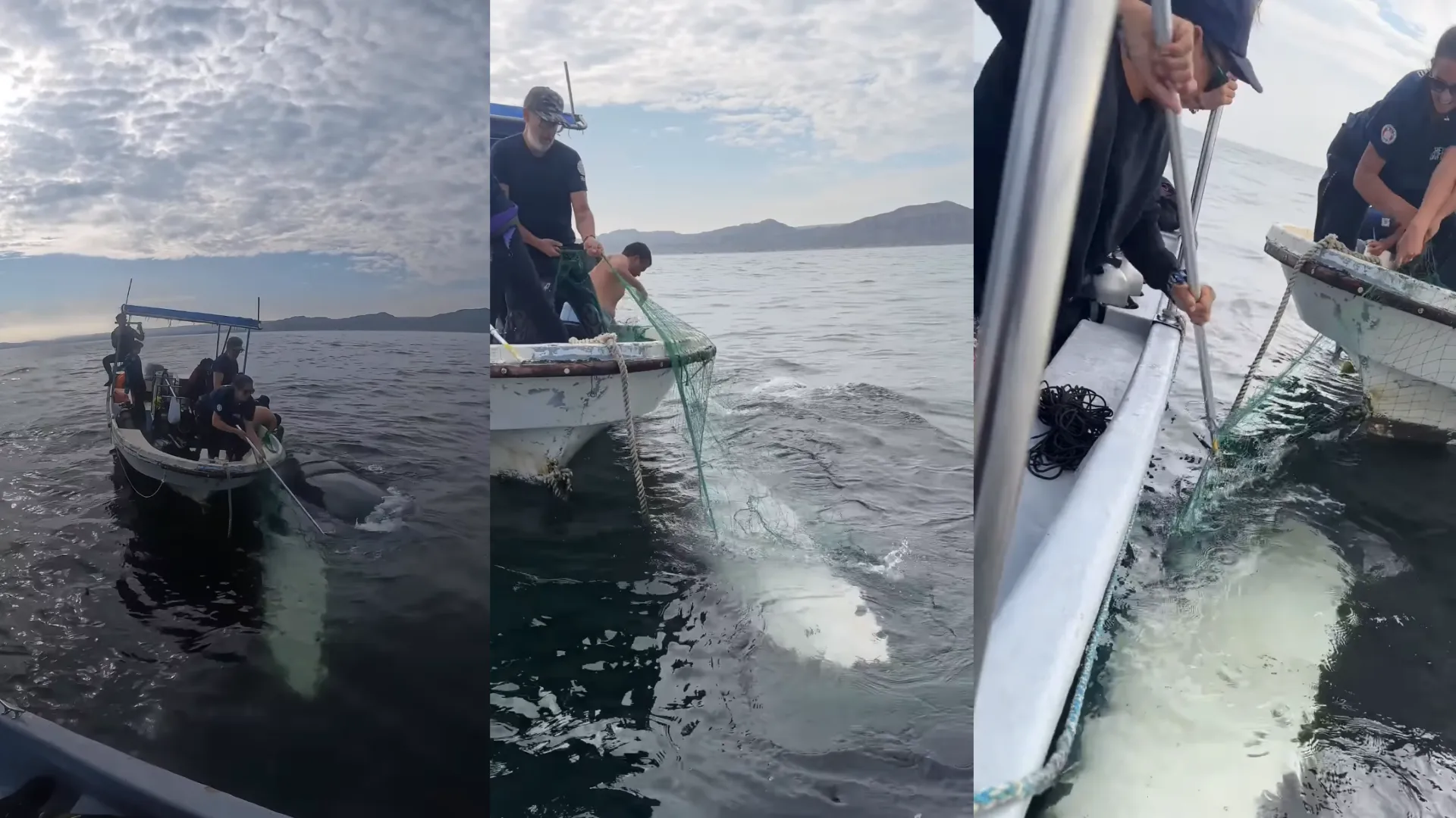 Ballena jorobada es liberada tras quedar atrapada en red de pesca en Los Órganos